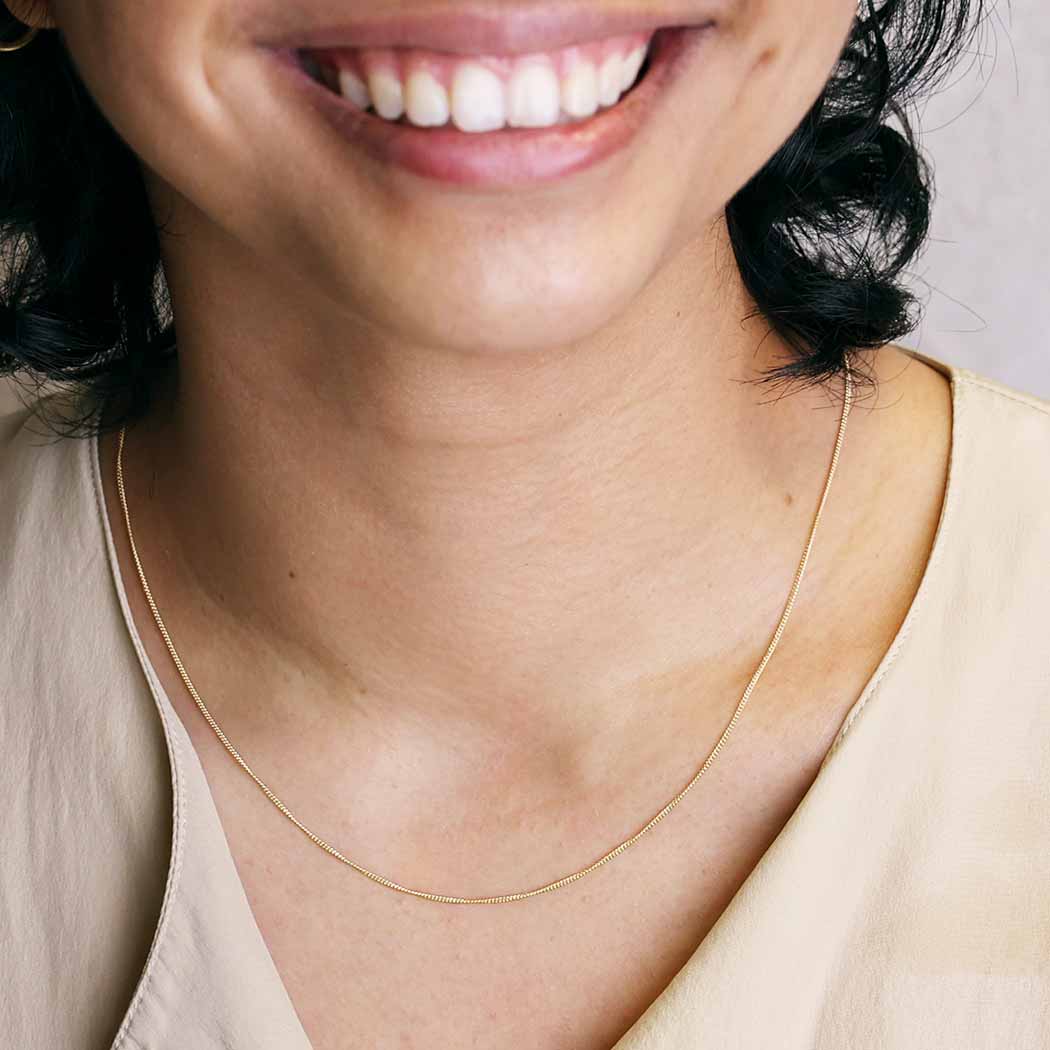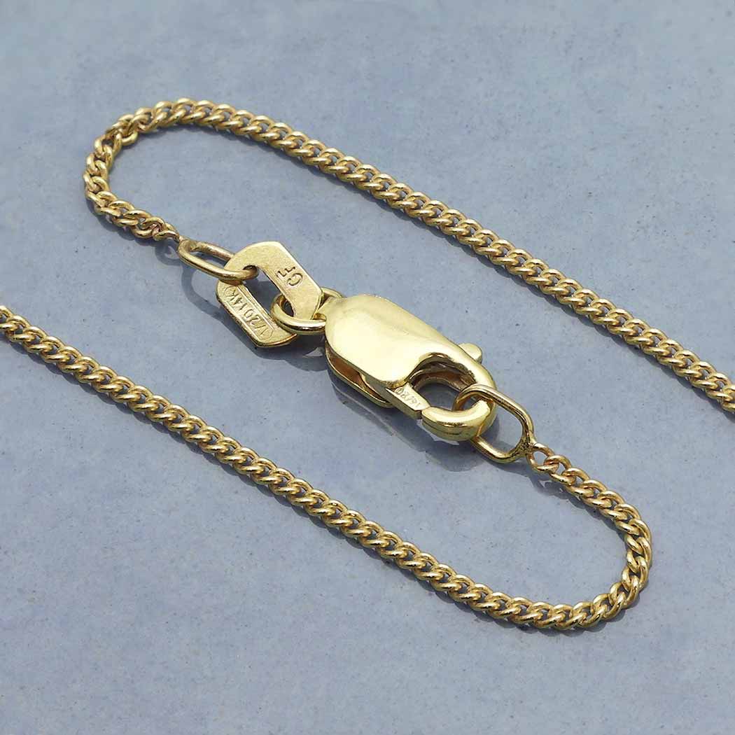 This gold filled delicate curb chain is perfect for creating charm necklaces. This curb chain feels lovely, each link is flatted and twisted to create a tightly linked sturdy chain. Each link measures approximately 1mm x 1mm and clasped together with a 8mm lobster clasp.