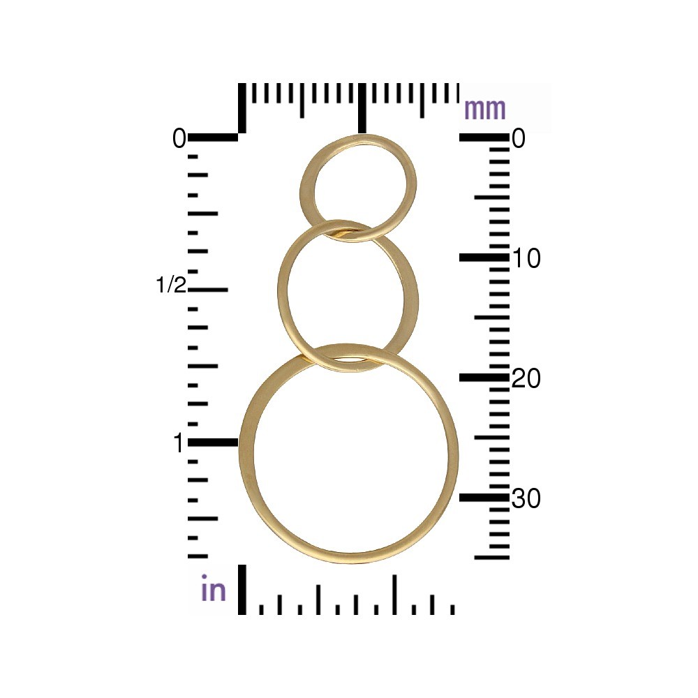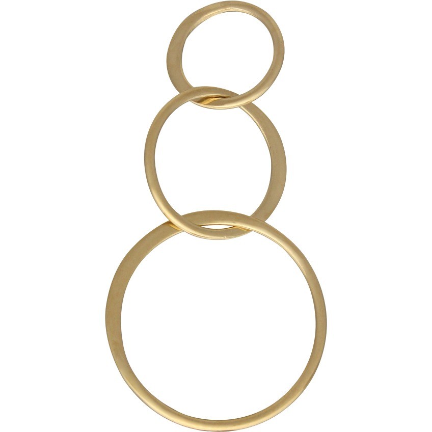 >Shiny 14K Gold Plated Sterling Silver Three Circle Link. Gorgeous handmade link made of three different size circles in a small to large pattern. Part of each circle is made of round wire, other part is flattened wire. A bold style without the weight.