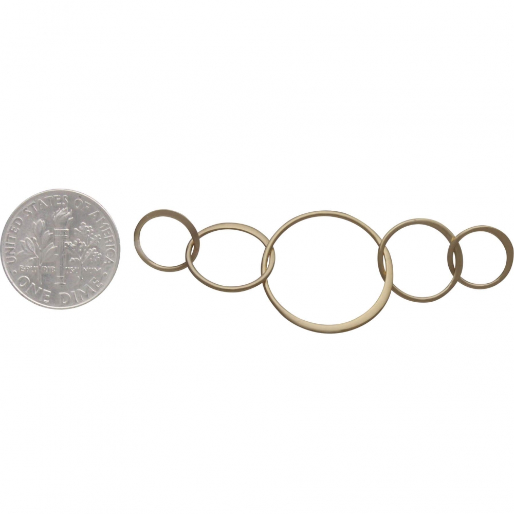 This 14K shiny gold plated sterling silver five circle link is an excellent addition to our Circles of Life collection. Each ring is flattened on one half for added dimension and to help attract a glimmer of light. The chain link itself features a set of five rings that are graduated sizes radiating outward from the center. Individual links measure 18mm, 12.5mm and 10mm. Shop our entire collection of Jewelry Links.