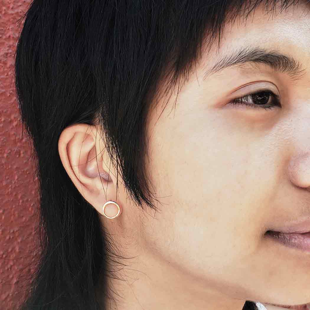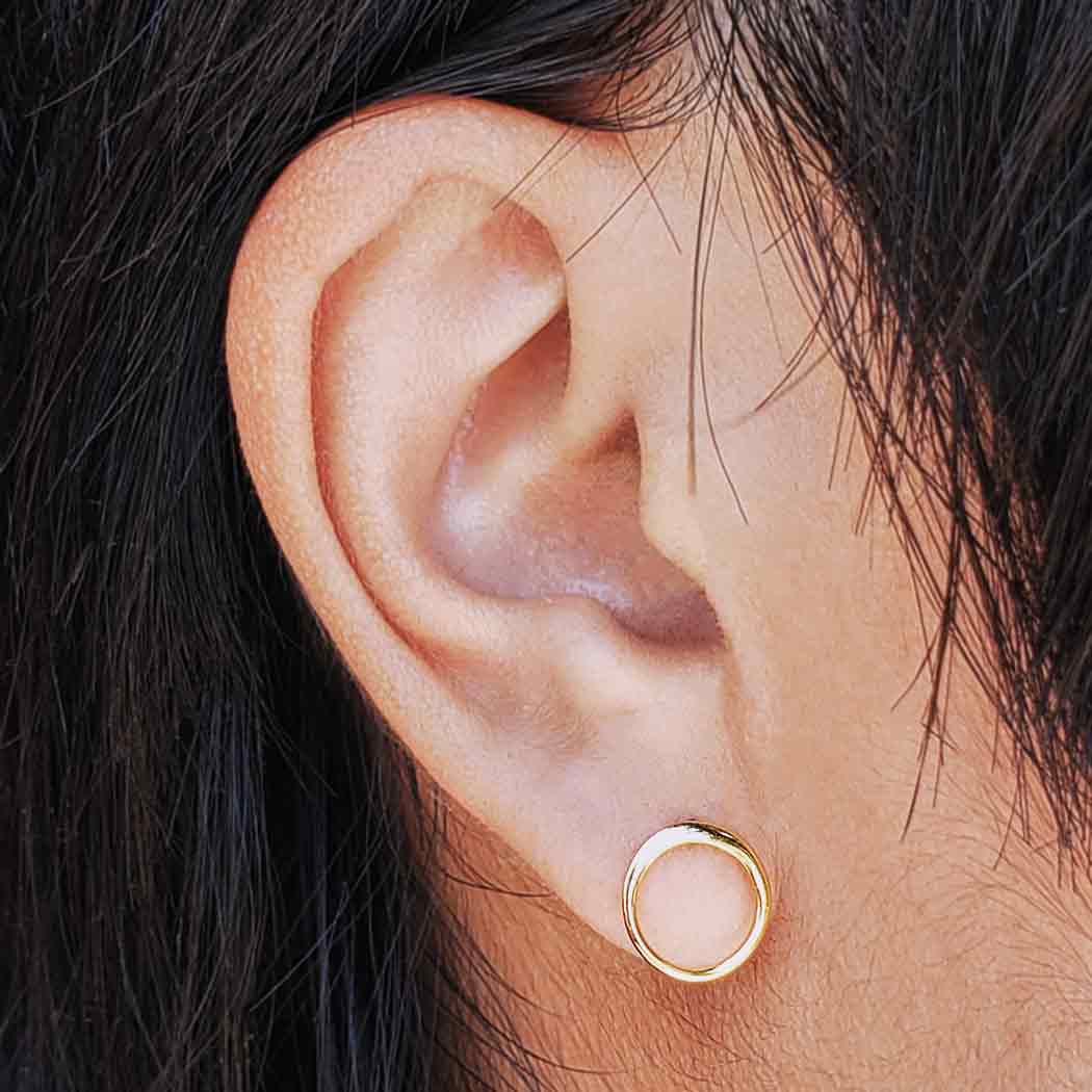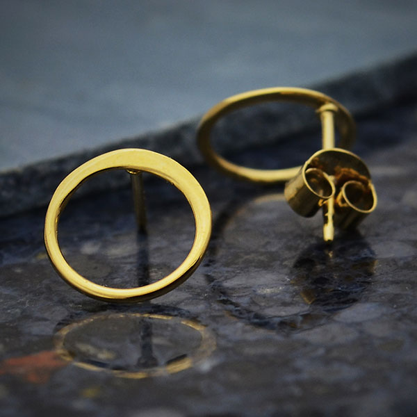14K Shiny Gold Plated Open Circle Post Earrings - 10 mm. These simple and airy post earrings boast clean, curvy lines. They're ready to wear and perfect for everyday. Add just the right touch of modern to your look. Bonus: the open design allows you to wire wrap gemstone beads, charms and links!