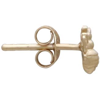 These 14K shiny gold plated bee post earrings are dainty and playful. In many religions, honeybees are commonly depicted as messengers for the spirits, and are closely associated with the sun. In ancient Egypt, they're the tears of the sun-god Ra, and in yoga, where each chakra emits a different sound in meditation, the lowest chakra emits the hum of the honeybee. Fly away with these cute and ready to wear stud earrings.