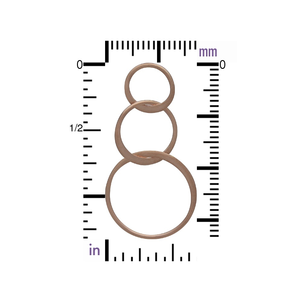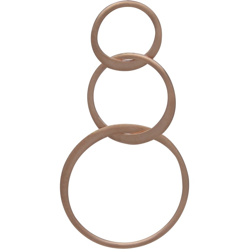 Jewelry Part - Circle of Life Link in 18K Rose Gold Plate. Gorgeous handmade link made of three different size circles in a small to large pattern. Part of each circle is made of round wire, other part is flattened wire. A bold style without the weight.