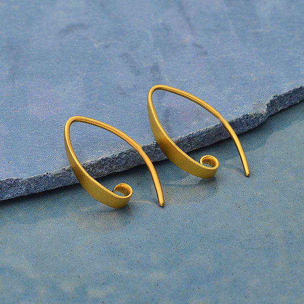 These Satin 24K Gold Plated Sterling Silver smooth ear hooks with a hidden loop boast a simplicity and modern flair that will quickly become a designer's favorite. This fluid design provides one hidden loop for dangling charms and gemstones. Browse more Earring Findings to make beautifully finished earrings.