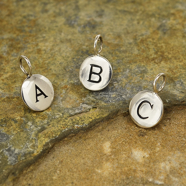These small sterling silver letter disc charms feature a 5 mm soldered ring to make attaching it to a Finished Chain easy peasy. These initial charms are perfect for making personalized jewelry. Create a cluster necklace with birthstone charms, hobby charms, or word charms! The possibilities are endless with this letter charm.