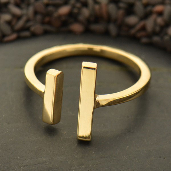 This modern and streamline bronze adjustable bar ring will make a beautiful addition to your ring collection. Lines play with one another to make a statement, and different angles form a unique shape. This ring is adjustable so that you can wear it on whatever finger you see fit!