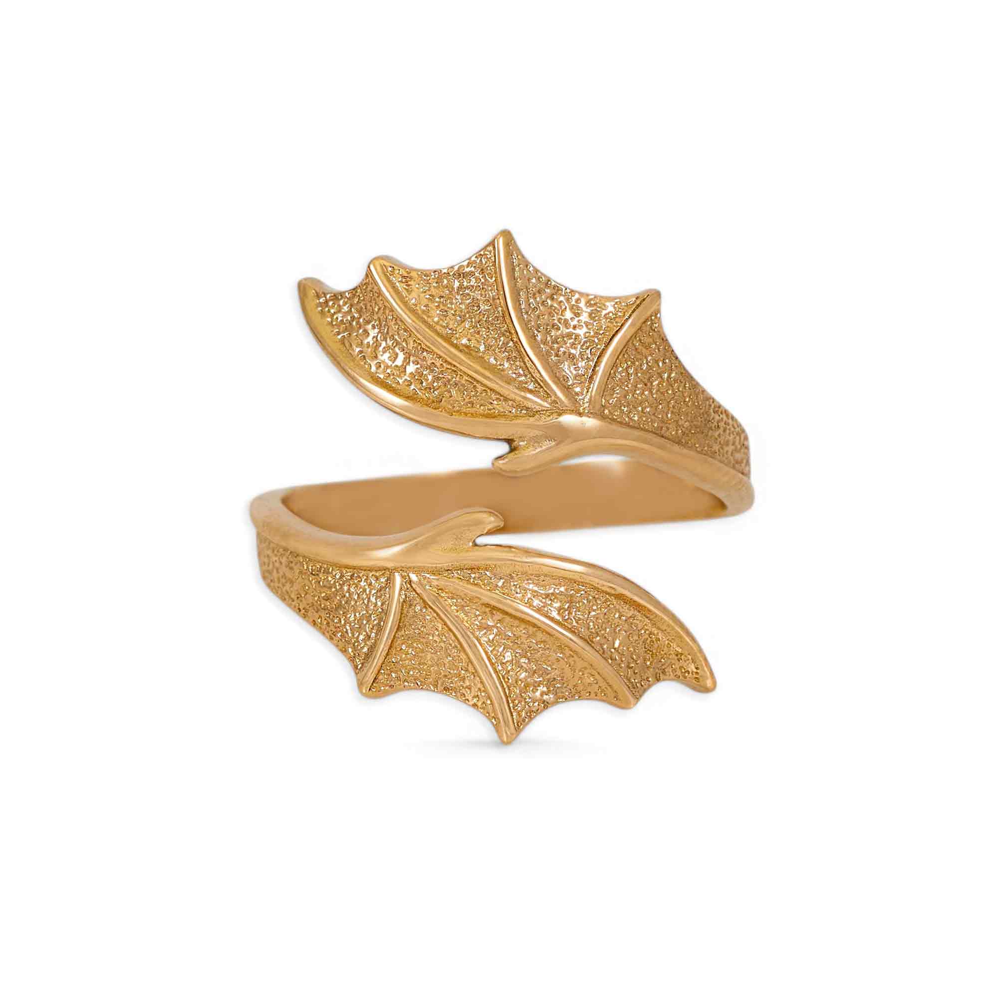 Unleash the mythical elegance of the dragon with this exquisite bronze adjustable bypass dragon wing ring. The ring features a pair of intricately designed dragon wings that wrap gracefully around the finger, creating a striking visual impact. The texture on each wing enhances its fantastical appeal. This ring’s bypass design allows for gentle adjustment to fit various finger sizes comfortably, ensuring a perfect fit for anyone who wishes to embody the strength and beauty of these legendary creatures.