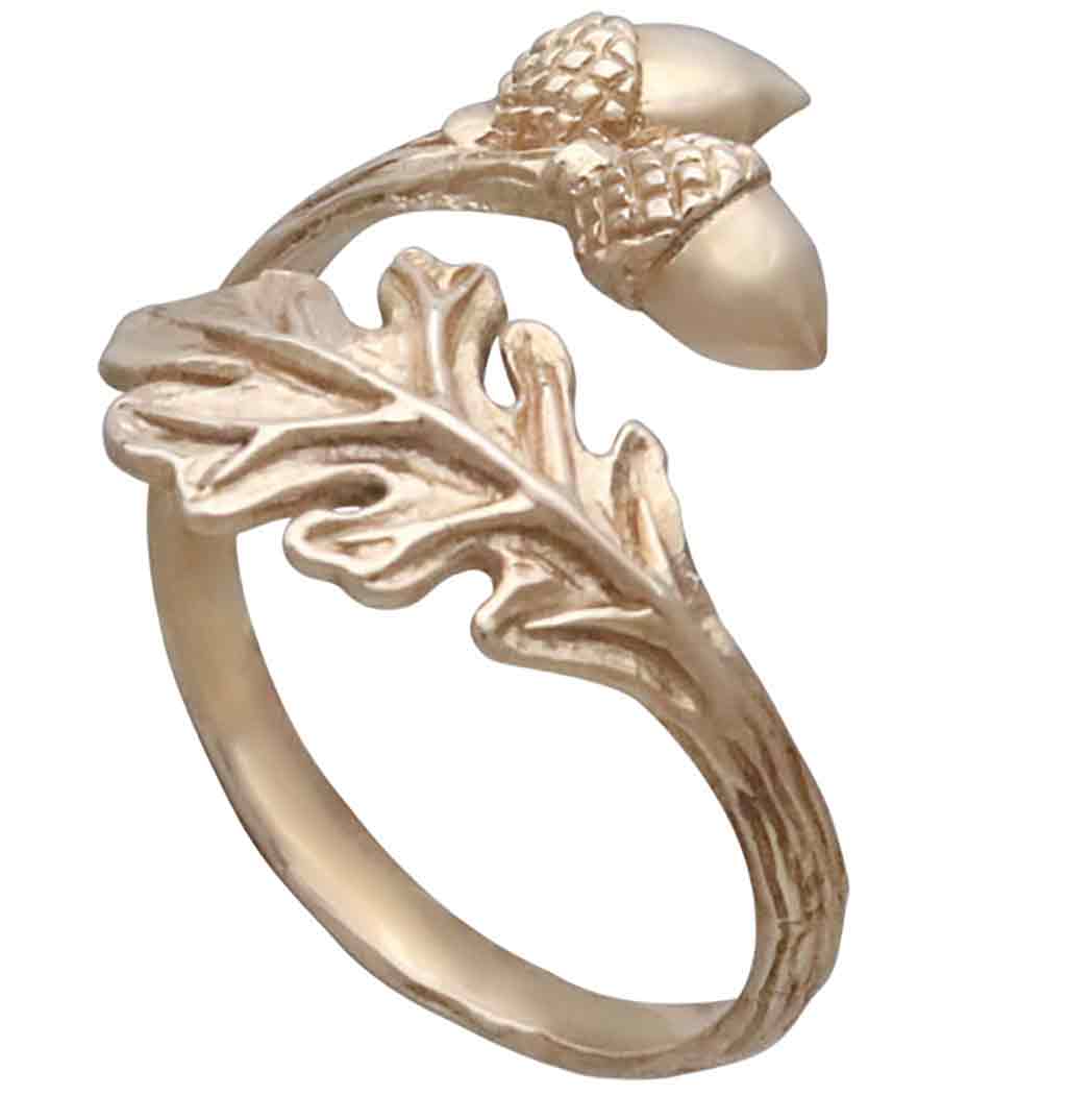 This bronze adjustable oak and acorn ring represents strength, longevity, and humble beginnings. The life-like details - from the hatchmarks on the shell to the texture on the branch band & leaf - make this ring a special find, especially for the autumn season. Oak trees start life as an acorn, and can take centuries to become the mighty oak tree of legendary status. Explore our vast collection of Adjustable Nature Rings for more jewelry inspiration.