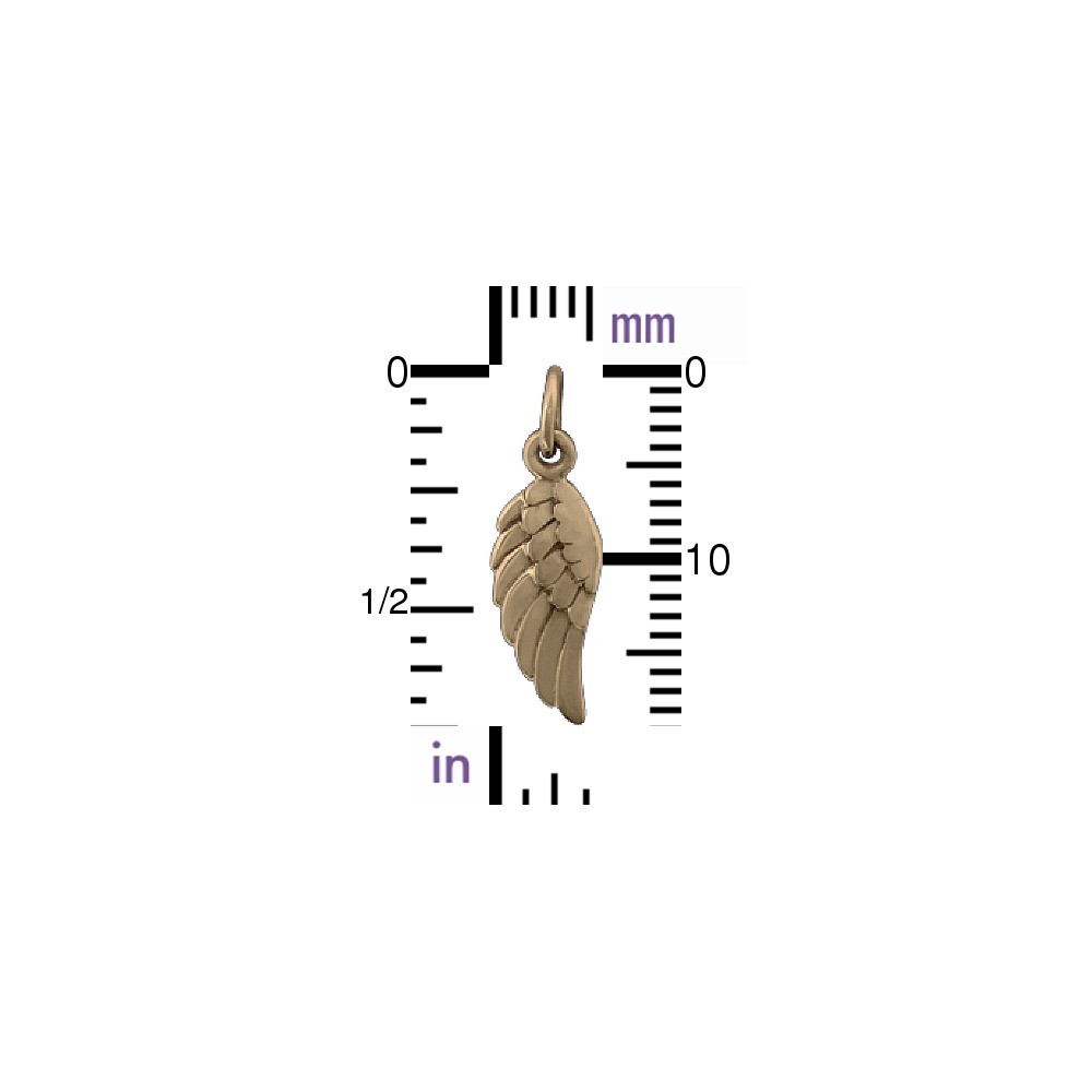 Tiny Natural Bronze Left Wing Charm. Wings symbolize a desire to let your spirit soar, to rise above a challenge and regain your clarity of thought. This charm looks fabulous on its own or in a cluster. Design on one side only. Shop all feather and wing charms