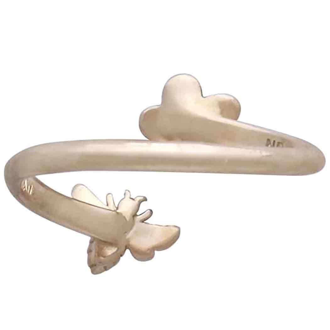 This bronze bee and cherry blossom adjustable ring makes a great gift, especially when you're clients are not quite sure what size to get. Perfect for entire wedding parties, Mother's Day, and Valentine's Day. The ring comes as size 7 but can be adjusted smaller or larger. Honeybees enjoy a special status in many spiritual practices. They're often messengers to spirits, tears of sun gods, and associated with yoga chakras. Shop for more silver rings in our Ring Collection!