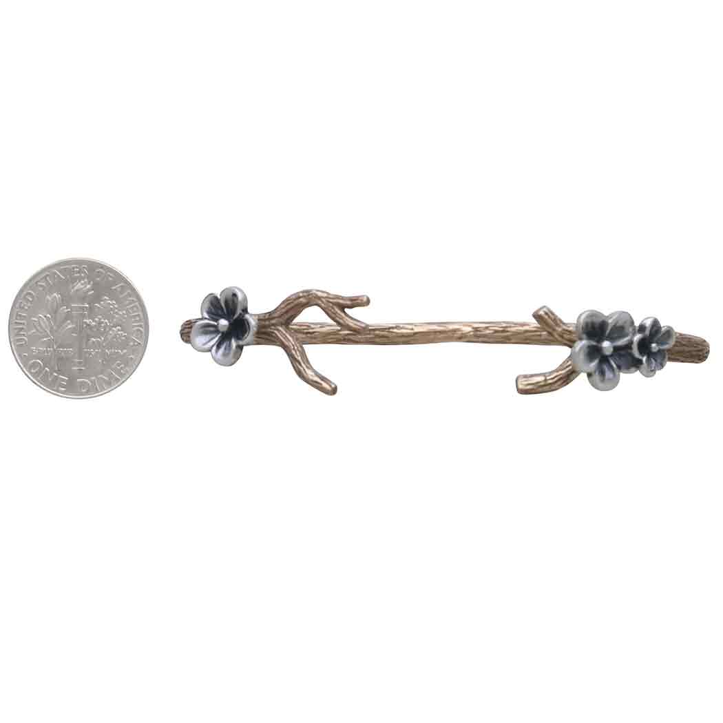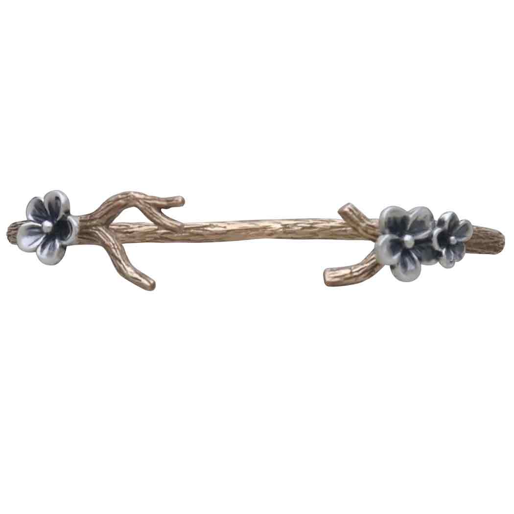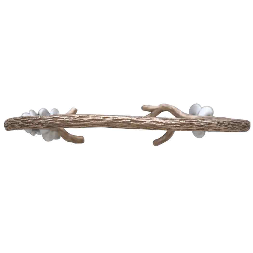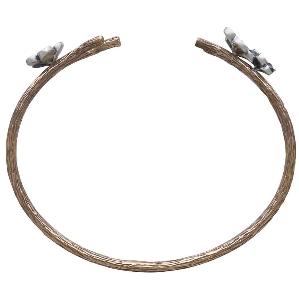 Those who are drawn to the woodlands will fall for this bronze branch bracelet with sterling silver blossoms. It's whimsical and wonderfully textured, with lovely branching and three blossoms gracing the edges of the cuff. Apple blossoms were honored by the ancient Celts as symbols of love, and they'd adorn their bedrooms with blossoms to entice romantic evenings. Offer your customers a unique gift for brides, bridal parties, and Valentine's Day when you list this cuff bracelet. Find more Finished Jewelry to round out your collection.