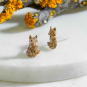 This bronze dimensional sitting fox post earring is a sweet little bundle all wrapped up in her own tail. She's is a little scruffy, at times grumpy, but full of charm, charisma, and attitude. Fox is known to be a trickster who uses her cleverness and quick wits to get through tough situations. Find more Post Earrings, and more meaningful woodland creatures in our Animal Charm Collection.