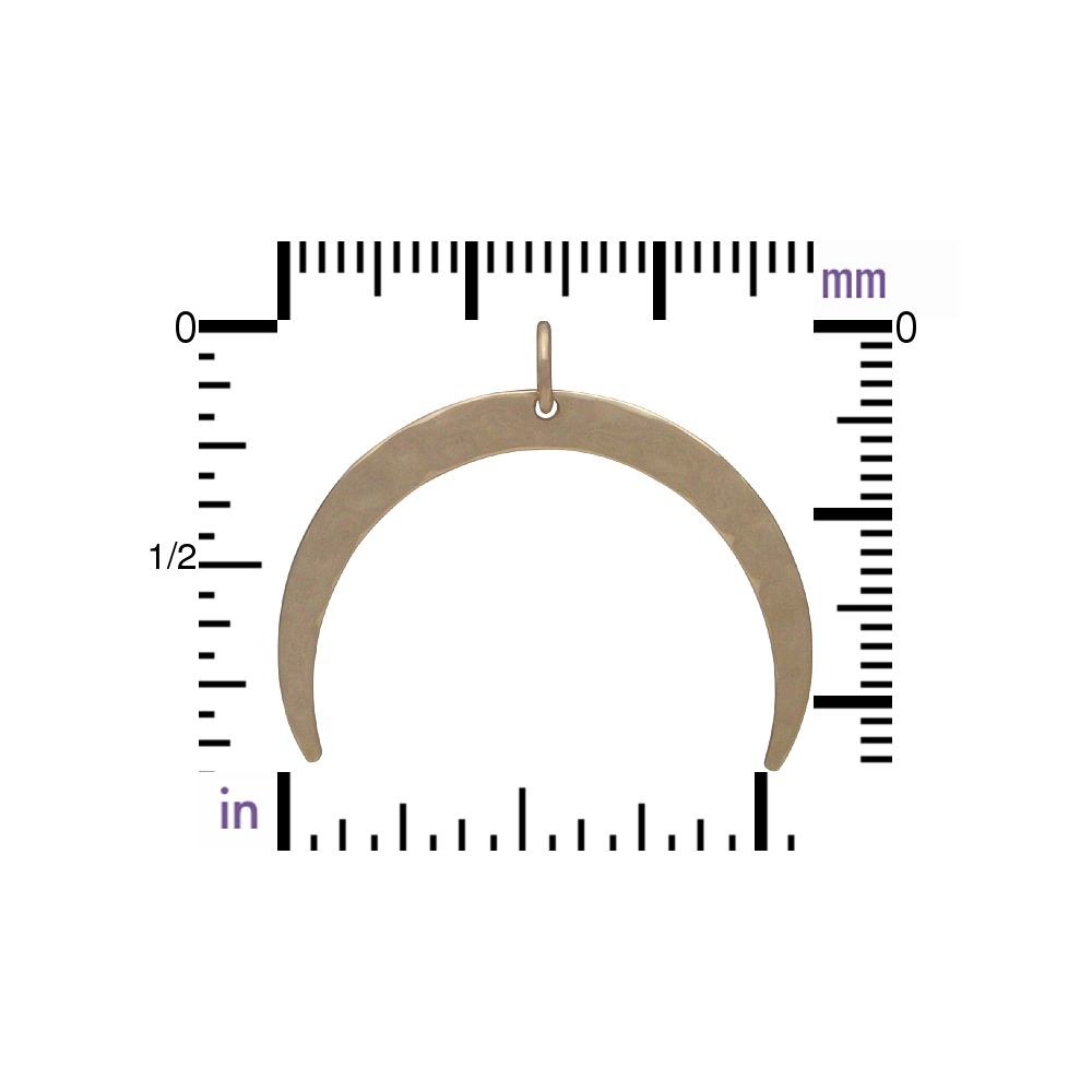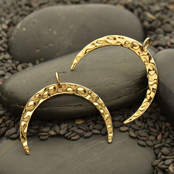 Large Hammered Crescent Moon Pendant - Bronze. Handmade in Bali, this Bronze textured Crescent Moon Pendant features a jump ring in the center for more design possibilities! Each phase of the moon has its own associated meaning. New moons are for beginnings, for example, while the waning moon is believed to be a good time for banishing things, or clearing negative influences. Channel the meaningful phases of our lovely lunar orb with this beautiful moon charm while creating jewelry designs that are out of this world! For more cosmic inspiration, take a peek at more of our Celestial and Talisman Collections.