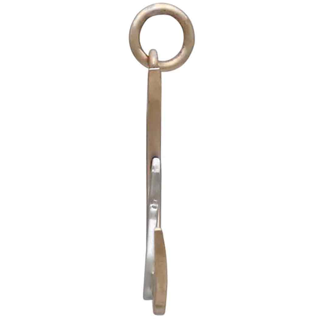 This bronze moon charm with sterling silver kitty is like a page right out of a fairy tale. A sweet kitty makes friends with the moon and stars as she sits just so with tail swooshing back and forth. Give this kitty cat a warm home after a long night out. This picture-perfect cat charm is just the thing for cat people and animal lovers. She's sure to bring a smile to your face and warmth to your heart.
