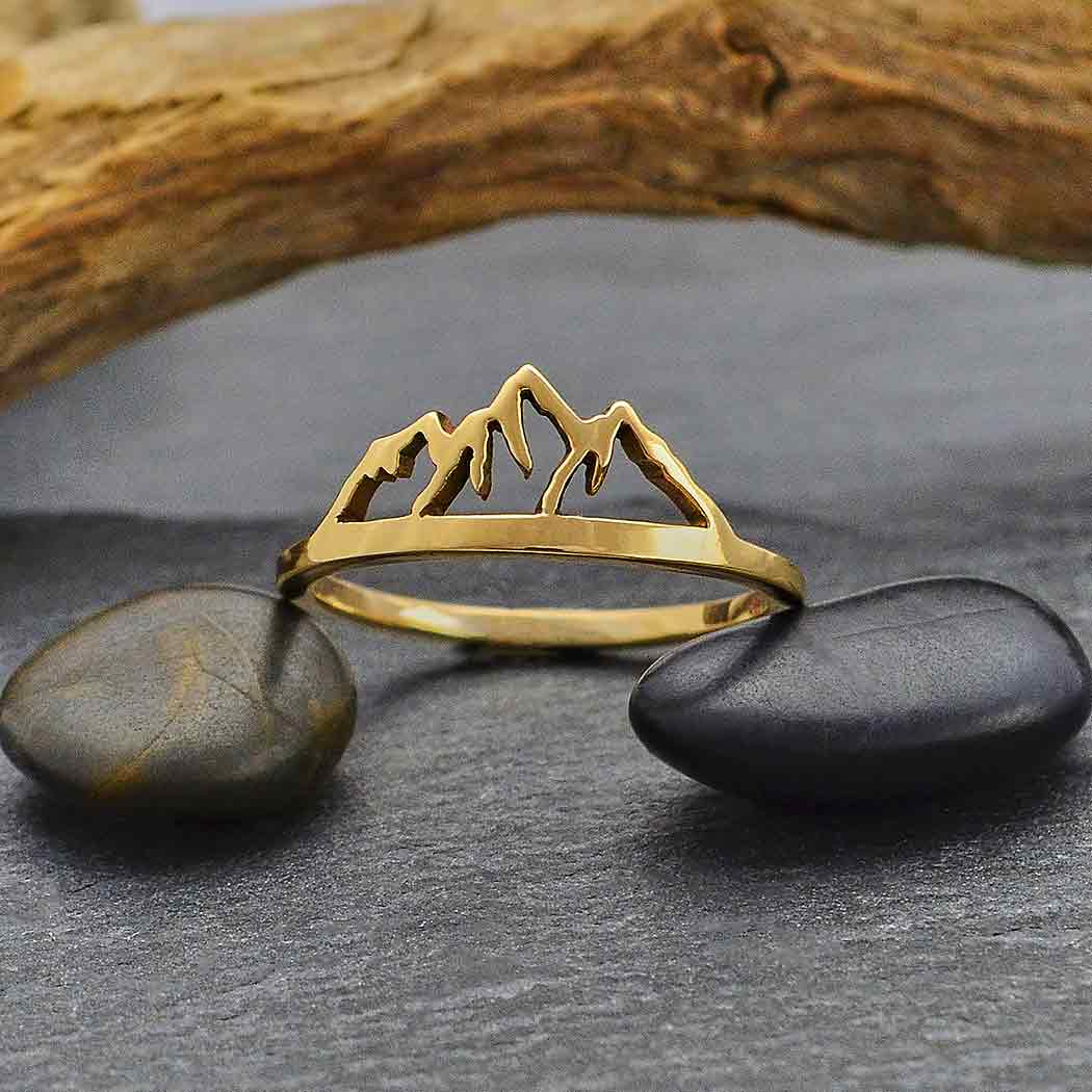This bronze mountain ring features a dramatic line tracing the silhouette of distant mountains. Just seeing the peaks and valleys on this ring will transport you back to the wilderness, out of the hustle and bustle of city life, to that place you found peace, relaxation, and space to breathe. No matter your adventure of choice - skiing, camping, hiking - this mountain ring will take you back to that cool mountain air.