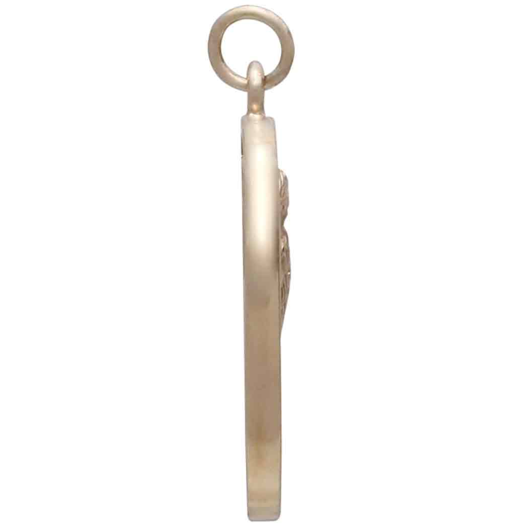 This bronze raven pendant in oval frame is poetic, drawing you in with her sense of calm. Depicted in profile and finely feathered, this little raven is taking in the world from her spot in the trees. In myth and legends, ravens symbolize loss, transformation, and hope. While the raven is associated with darkness, death, and shapeshifting, it also connotes intelligence and bravery.