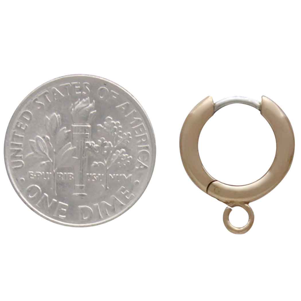 Some days your customers desire a smart, pared down look like these bronze plain huggie hoops with loop offer. Using the loop allows you to put the spotlight on one exquisite pearl, charm or whatever sparks your imagination. Go big & bold, or tiny & exquisite. Or offer both to your customers and let them decide. Simple, sleek, and modern, these huggie hoops will fall into the background and allow the stone to steal the show. These huggie hoops are a snug fit on many ears. The outer diameter is 11mm and the inner diameter is about 8mm.