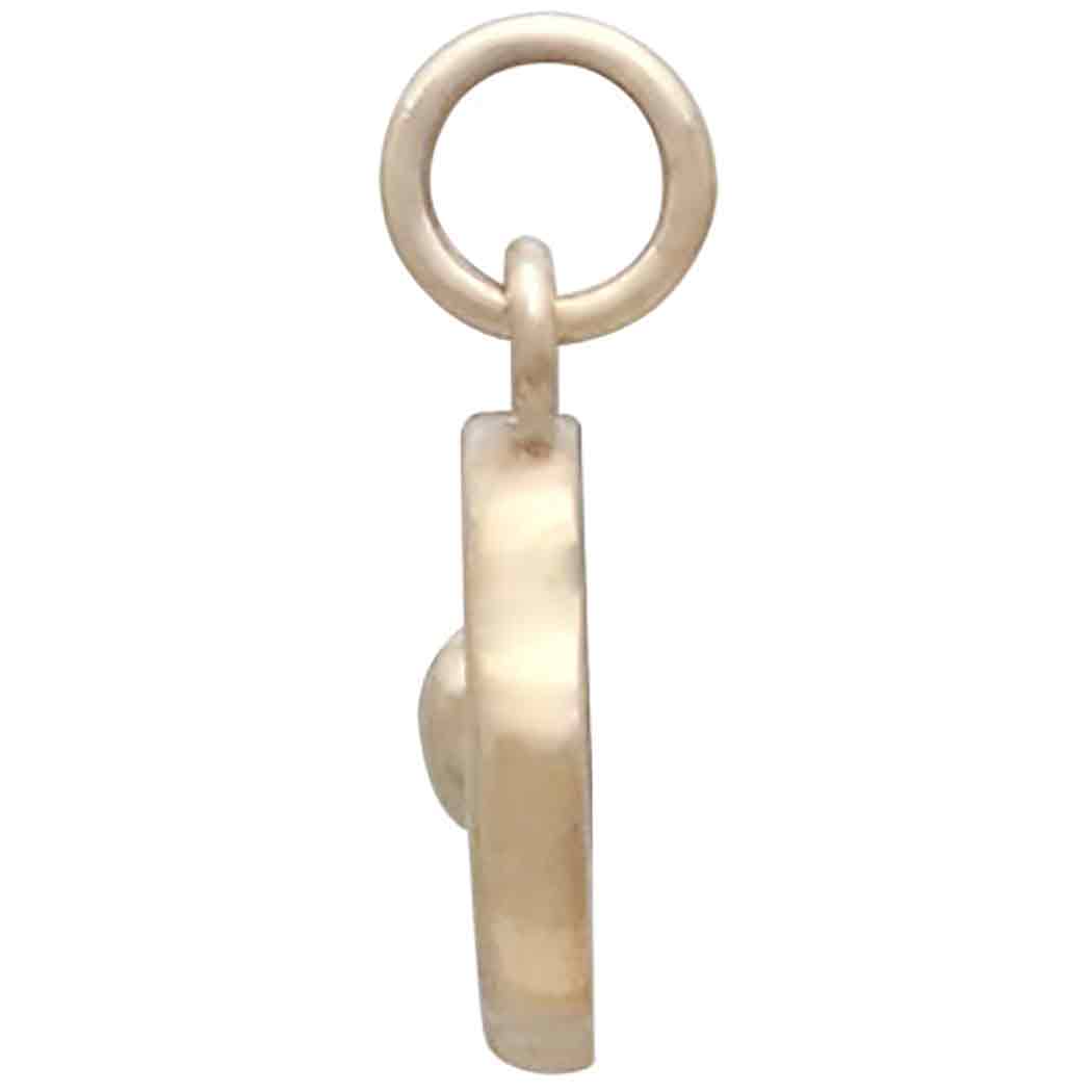 Spark joy and romance with this bronze wax seal heart charm. The details on this chubby heart charm, like the irregular edges and the circle of tiny dots, add to its appeal. Hearts are recognized across cultures as being a symbol of love, charity, joy and compassion. In times past, alchemists used heart symbols for incantations pertaining to love and romance, attempting to strengthen relationships.