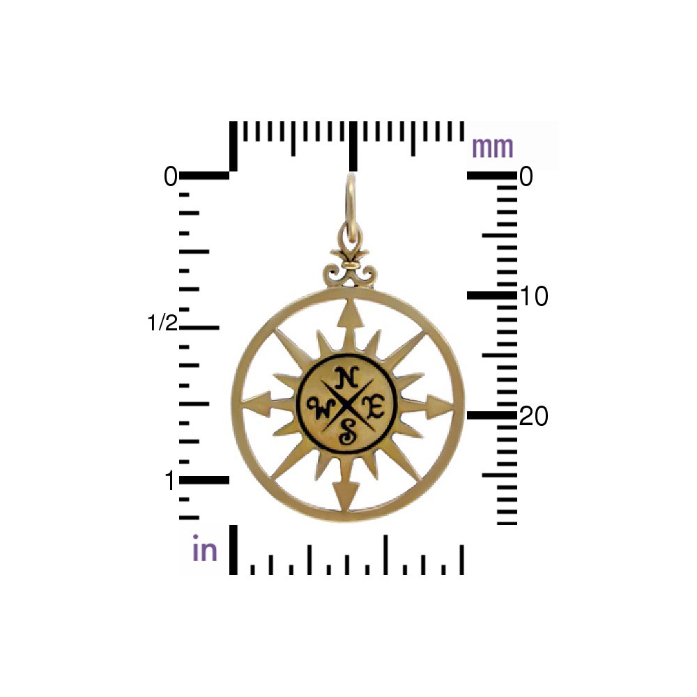 Natural Bronze Compass Rose Pendant. The compass rose has appeared on charts and maps since the 1300's. The term "rose" comes from the figure's compass points resembling the petals of its blossom. The device is used to indicate the directions of the winds. Shop our entire Travel Collection.