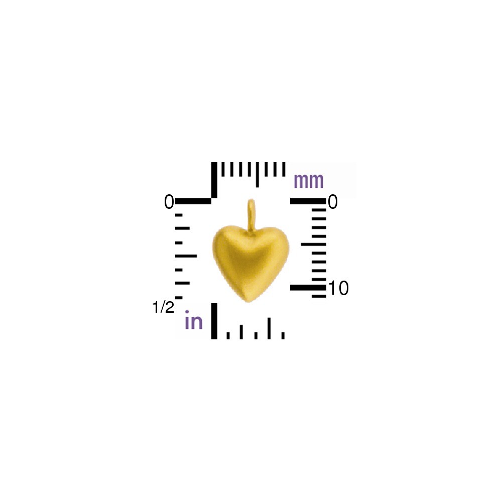 Satin 24K Gold Plated Sterling Silver Medium Puffed Heart Charm. Satin Finish Vermeil Style. Click here to see our entire collection of hearts!