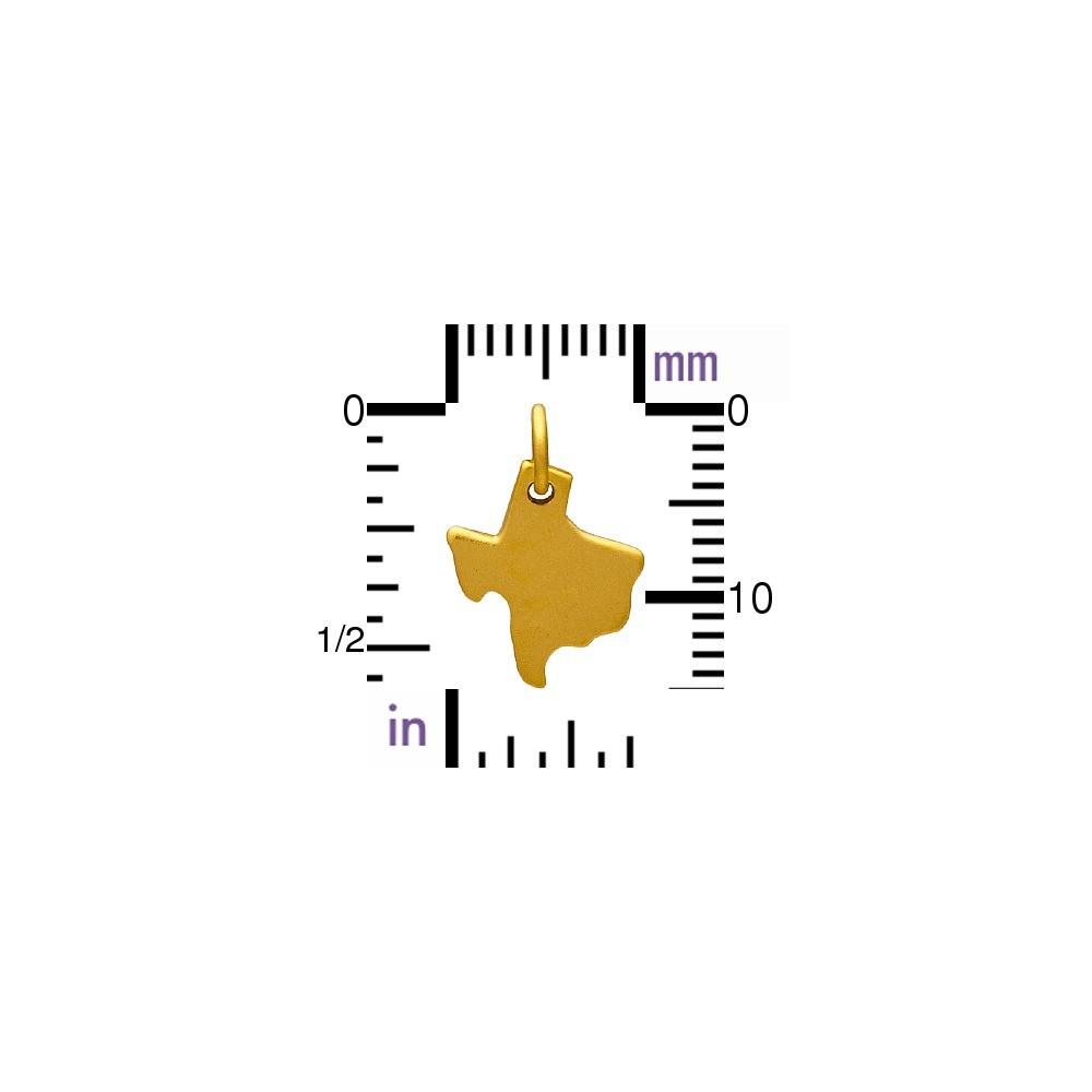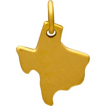 Satin 24K Gold Plated Sterling Silver Texas State Charm. Texan? Show your state love and pride with this state charm! Small enough for charm bracelets, but big enough for possible stamping. Pair with hearts to show love, or browse other Travel charms!