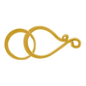 Medium Satin 24K Gold Plated Sterling Silver Hook and Eye Clasp. This simple clasp has a delicate look, ideal for use with light weight necklaces. Connection to the soldered loop on the hook is secure, meaning there is no gap where your wire could slip through. The eye is a soldered ring made partly of round wire, partly of flattened wire.