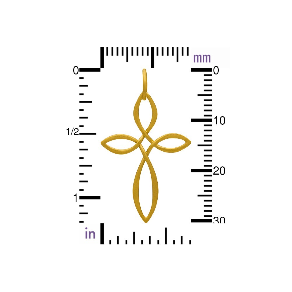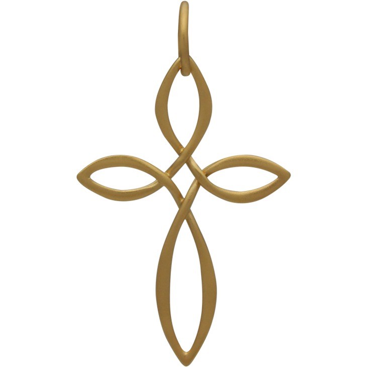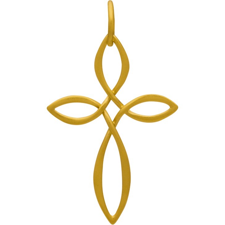 Satin 24K Gold Plated Sterling Silver Celtic Style Cross Pendant. Free-flowing lines form this beautiful and airy cross pendant. It's openwork design allows for you to easily embellish with other dangles or gemstones, or, personalize this cross with initials or birthstones for a special and meaningful keepsake.
