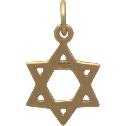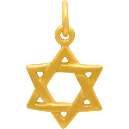 Gold Pendant - Star of David in 24K Gold Plate. Featuring a matte satin finish of 24K Gold plated over Sterling Silver, this Star of David pendant is perfect for creating festive Hanukkah Jewelry. A beautiful and widely recognized symbol of the Jewish faith, this Star of David is a wonderful and simple charm to adorn any piece of jewelry. Use in day to day jewelry for constant reminders, or create lovely Holiday Jewelry for you or a loved one. Browse for more in our Faith Charms Collection and Holiday Collection.