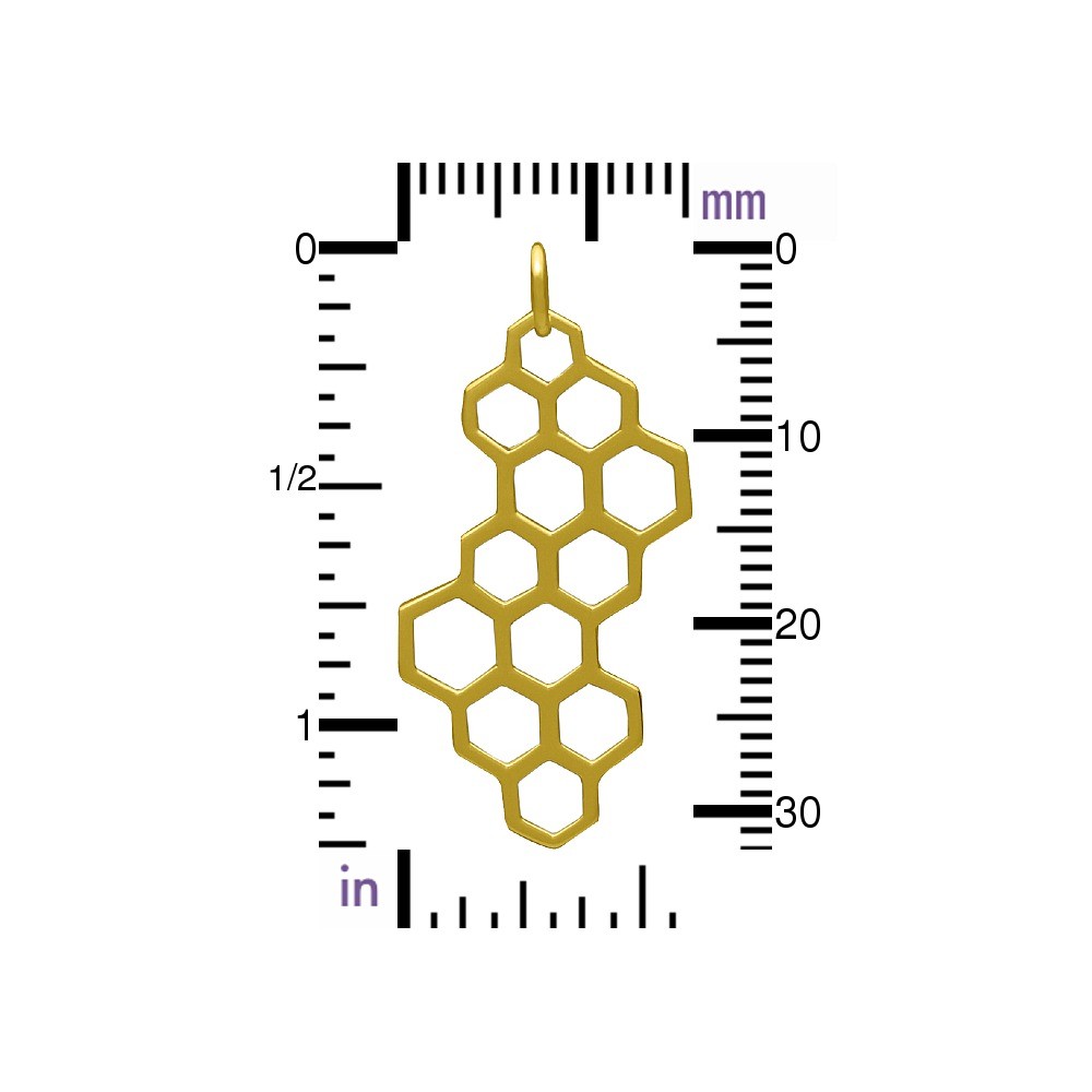 Satin 24K Gold Plated Bronze Honeycomb Charm. The honeycomb, a collection of hexagons, symbolizes the heart and represents the sweetness of life found within. This honeycomb charm has a bold graphic element that is extremely appealing. Added bonus - use the open spaces to further embellish with colorful beads. This charm will look great on charm necklaces, linked together, and on earrings too! Shop for more Insect Charms.