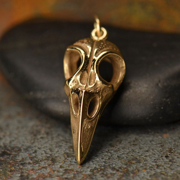 Natural Bronze Bird Skull Charm. This bird skull is beautifully detailed. Wear this talismanic charm to evoke confidence to soar to new heights, to give you vision when starting something new, and to energize your creativity. Though designed on all sides, the back is hollow. Simply string this bronze skull pendant onto a Finished Chain or a Leather Cord. Shop for more Animal Charms.