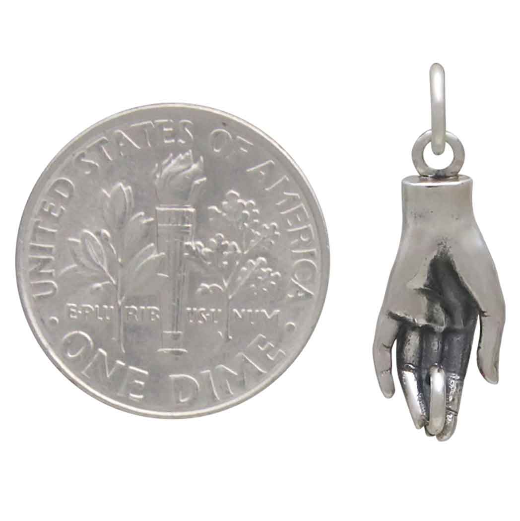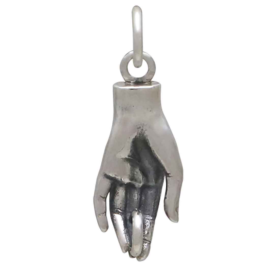 Honor the human spirit when you offer jewelry highlighting this hand charm. This charm features a small soldered hidden loop allowing for you to hang links, beads, or other findings of your choosing to make everything from simple to dramatic designs.