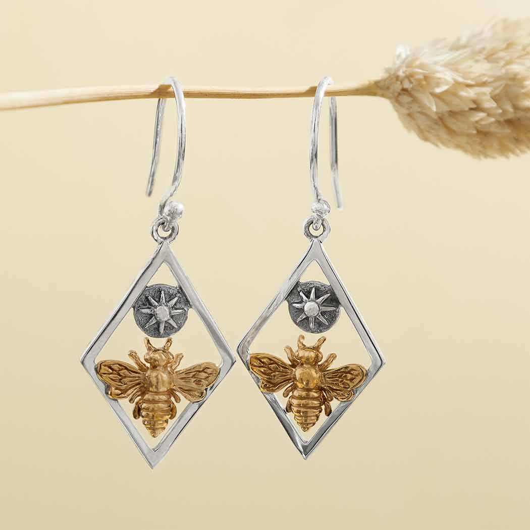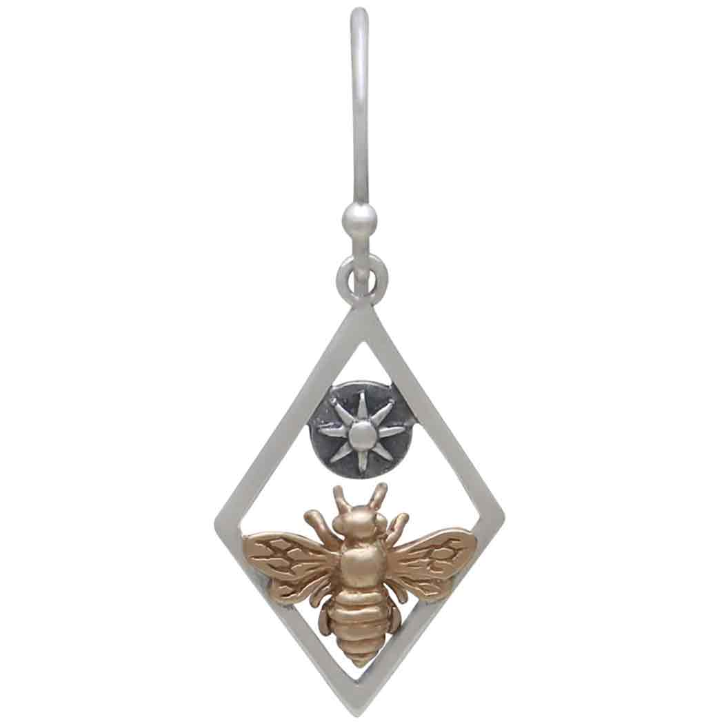 Channel the sweetness of honeybees when you offer these sterling silver and bronze bee and sun dangle earrings. The diamond shape not only makes a beautiful frame, but also provides space to attach charms and beads.