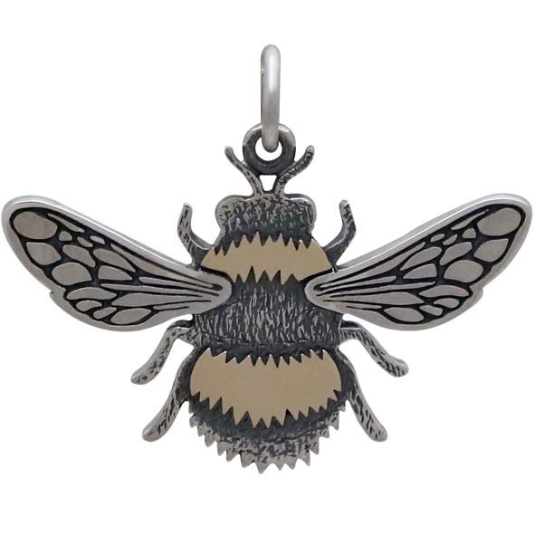 Create a buzz when you turn this mixed metal bumble bee pendant into a sweet charm necklace to offer in your shop. The graphic nature of this bee charm, stemming from it's fine etching and pops of color, is a departure from our prior bee charms, but really works. The detail is exquisite - from the veining on the wings to the fuzzy looking abdomen.