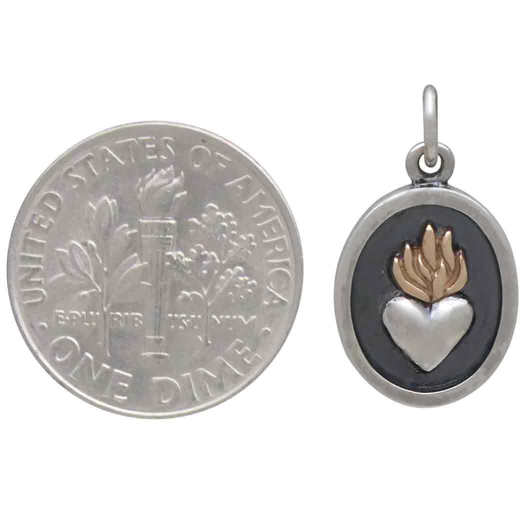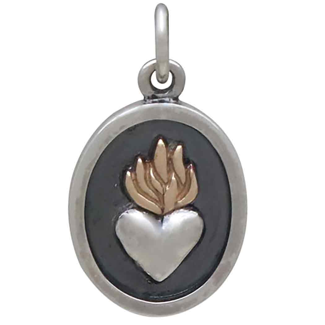 Within the Christian faith, the sacred heart is a medieval symbol of Christ's sacrifice. It signifies the redeeming love of God as the source of all illumination and happiness. This radiant heart charm is fiercely romantic. Wear them as comforting reminders of enduring love and faith. Find more Hearts and Religious Charms.