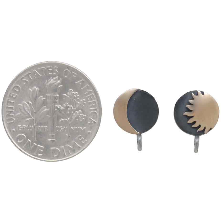 The contrast of these two metals make these mixed metal sun and moon post earrings with loop must-haves for jewelry designers' tool box. They dress up any bead and gemstone to perfection.