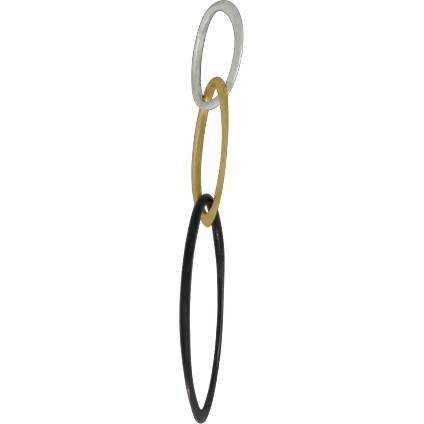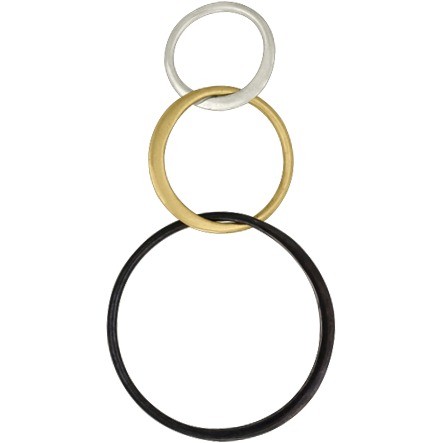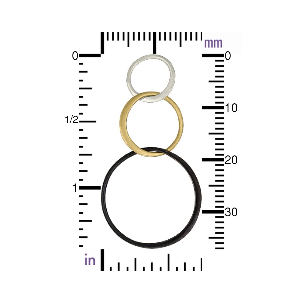 Mixed Metal Three Circle Link. A unique handmade link made of three graduated circles in a small to large pattern. Each circle is a different finish; the smallest is sterling silver, medium is bronze, and the largest is oxidized black finish over sterling silver. A bold style without the weight!