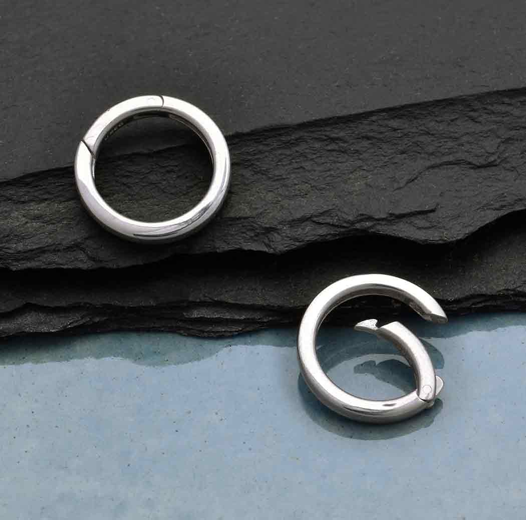 Offer your customers versatility with this round silver removable charm holder link. Its streamlined and sleek profile blends in seamlessly with most looks. Add up to two or three charms at a time, and clip onto the chain of your choice. Change your selections whenever the mood strikes. If you like to switch up your charms daily, this bail is for you.