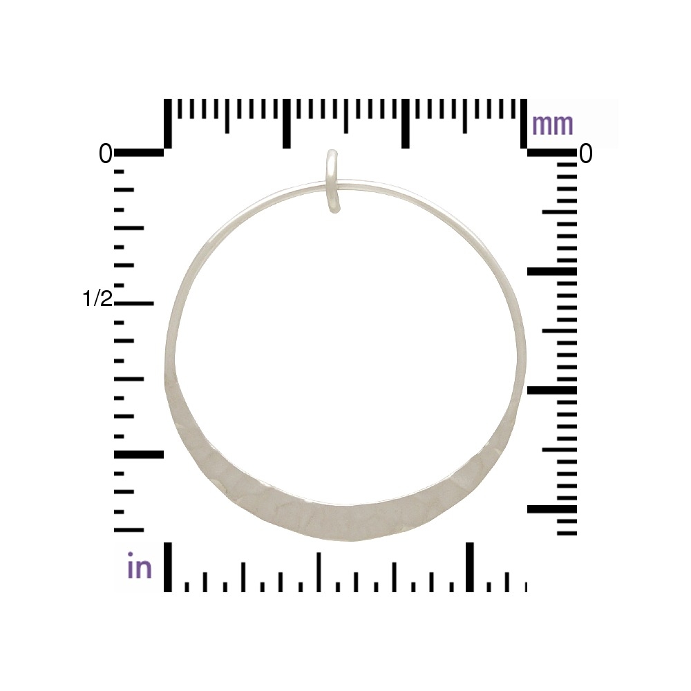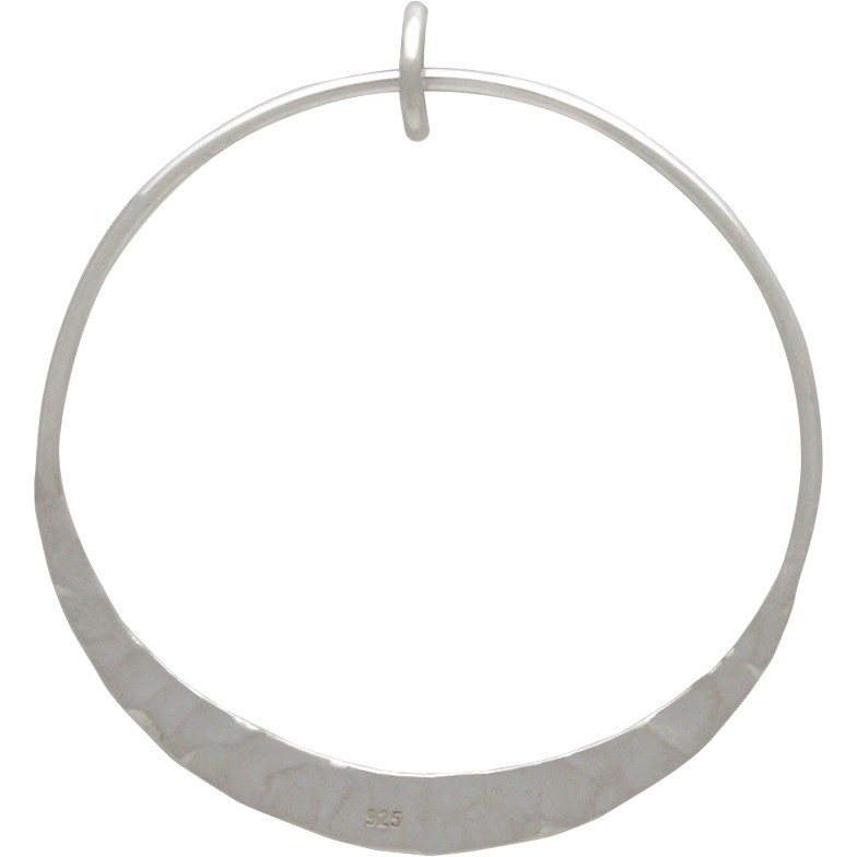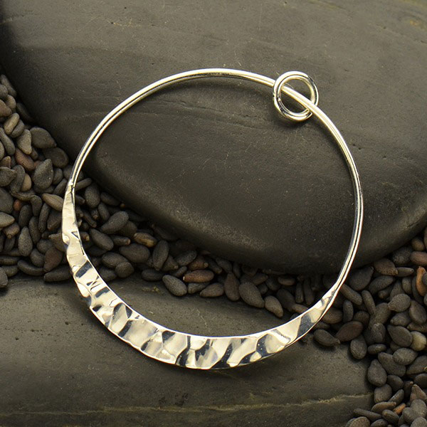 Silver Circle Pendant with Hammer Texture Bottom Edge. This big beautiful hammered circle link will add a modern, fresh look to any design. Part of circle is made of round wire while the other side is flattened with a hammered finish. If there's one word to describe this link it is... versatile! There are endless ways to incorporate this piece into your jewelry designs. Add ear wires or dangle a gemstone and...Voila! Instant fabulous earrings! The possibilities are endless. Use in combination with circle jewelry links.