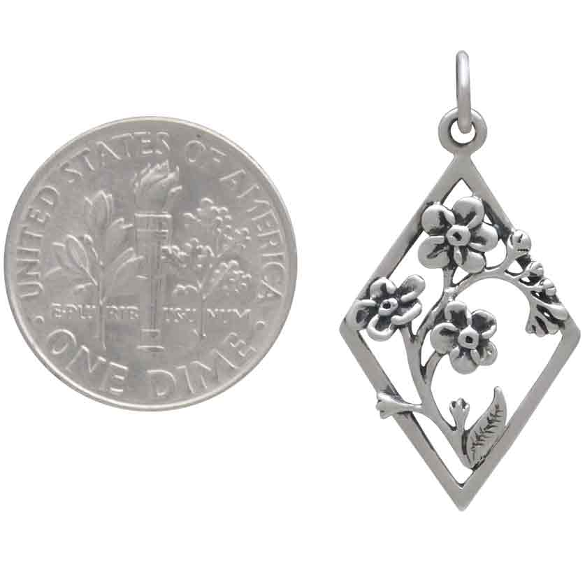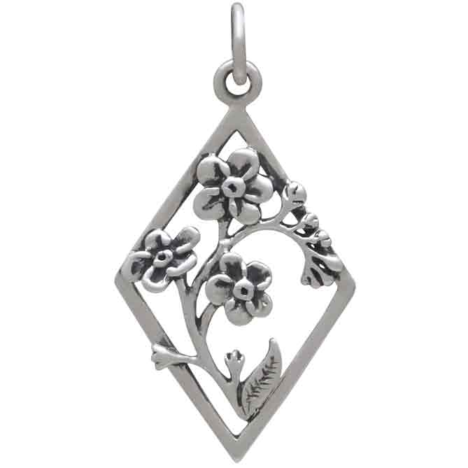 Offer silver forget me not flower charms in diamond frames as symbols of faithfulness, love, and remembrance. They make meaningful gifts for all sorts of occasions, like engagements, Valentine's, anniversaries, memorials, and even bon voyage gifts - a thoughtful way to say "travel far, but forget me not".