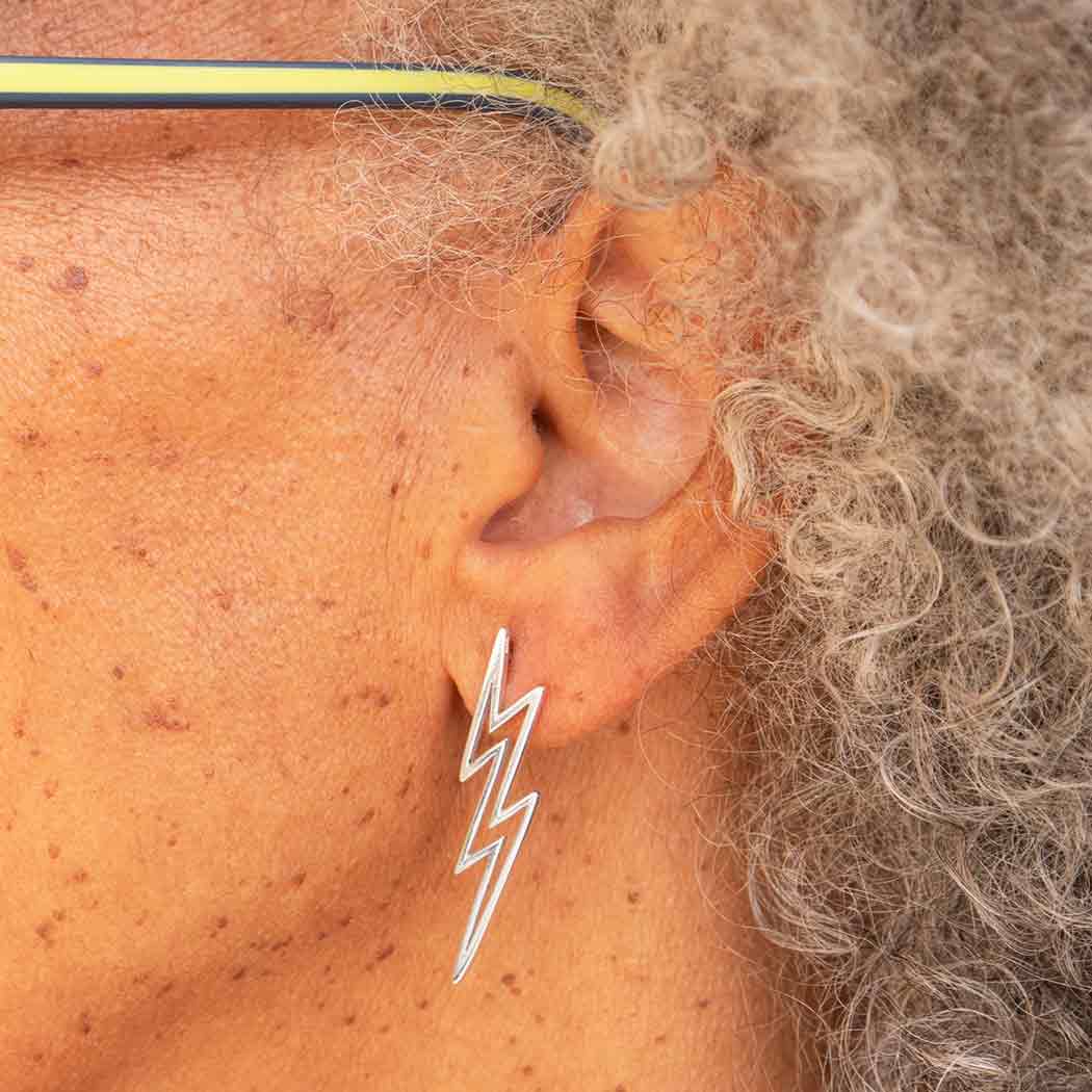 Wear these silver large openwork lightning bolt post earrings as reminders of how primal and awe-inspiring strikes of lightning can be. These bolts of energy tap into our most primal, basic emotions - fear, excitement, awe - even joy. In many cultures, the meaning of lightning deals with inpiration & spiritual illumination, and is associated with bright ideas & strokes of genius.