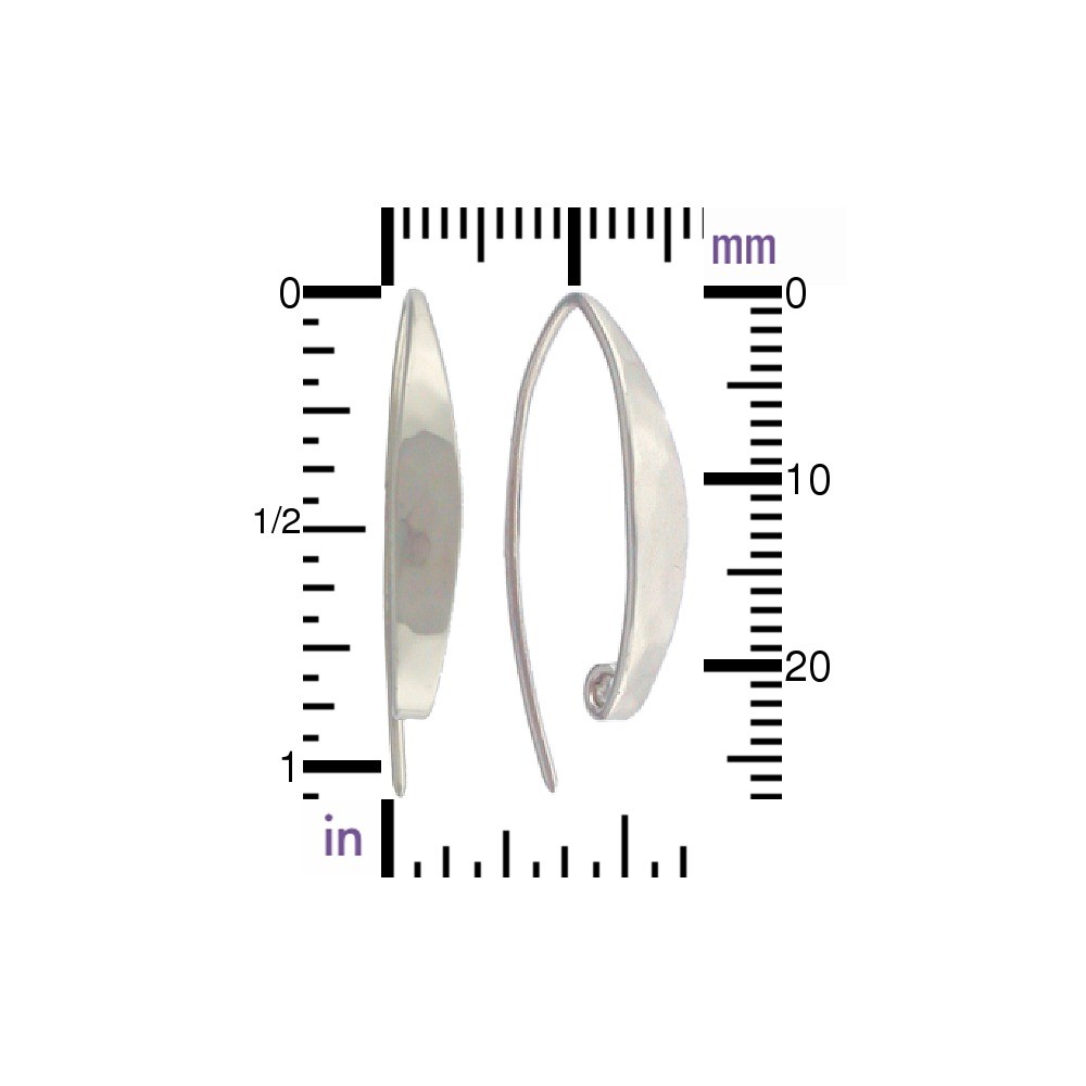 Contemporary Sterling Silver Earring with Shiny Hammer Finish on Front. Fluid design provides one hidden loop for hanging. Shop more earring findings.