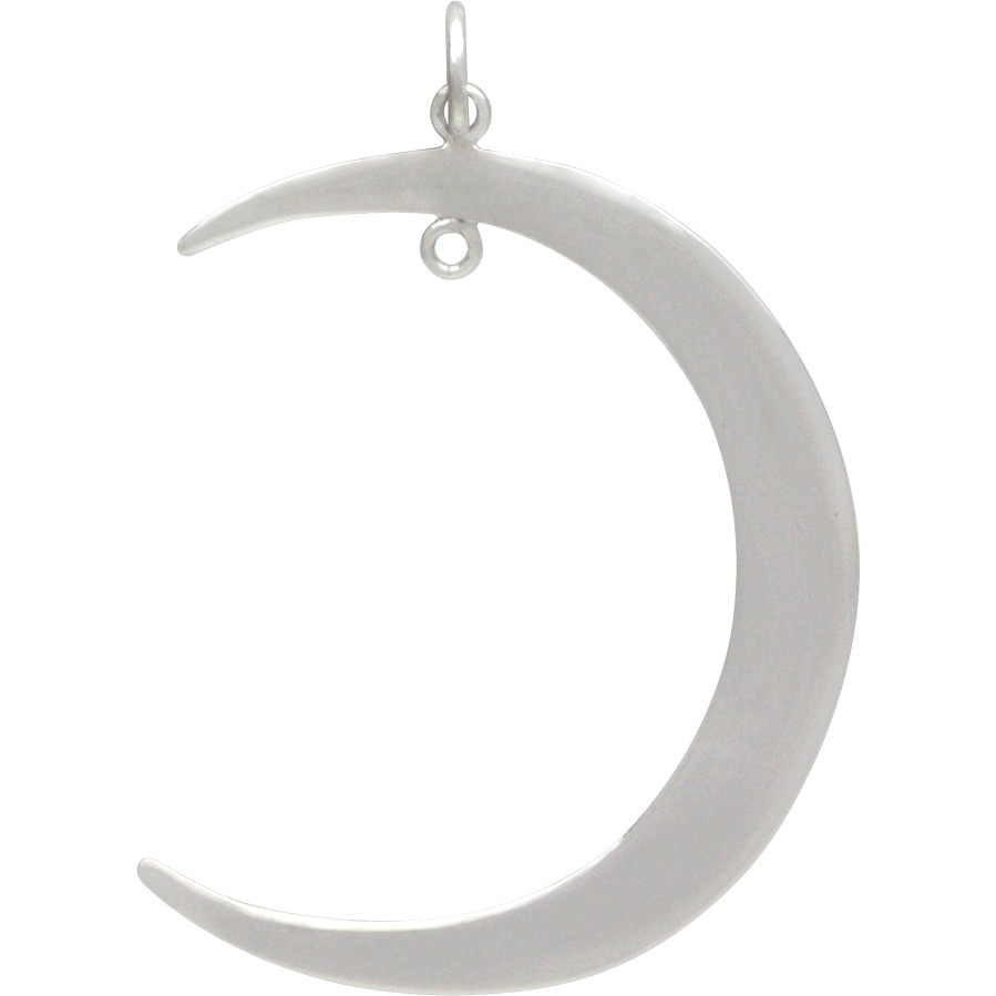 Silver Moon Pendant - Right Facing with Fixed Jump Ring. This stunning Moon Pendant is perfect for creating a celestial necklace! This pendant includes a fixed jump ring making it easy to dangle a gemstone or charm! Legends relate that people once believed the moon was made of silver. So, they would ask the moon for help and jingle the change in their pockets as they gazed at it's glory. For more design inspiration, visit our Celestial and Talisman Collections.