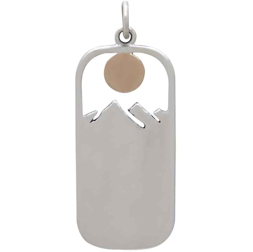 There's so much to love about this sterling silver rectangle tree pendant with bronze sun. The mountains, the forest, and everything within is soaking up the noon day's sun.