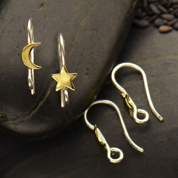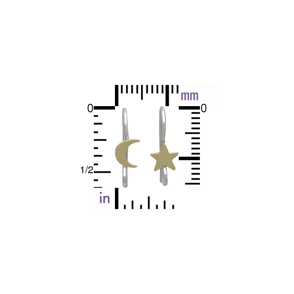 Sterling Silver Star and Moon Hook Earring with Bronze. This glistening bronze moon and star hook earring finding set allows you to wear the night sky anytime of day! These earring findings are perfect for creating Celestial or Talisman Jewelry sure to please any stargazer. These earring hooks are sold as a mismatched set for a fun and unique look!
