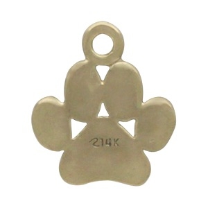 Solid 14K Gold - Paw Print Charm without a Jump Ring. We've taken our popular Paw Print Charm and removed the jump ring, making it easier for wire wrapping projects such as earrings and lighter in weight for ease of wearing. But don't worry, if you prefer to have a jump ring to make a simple necklace, we offer a Solid 14K Gold 5mm Jump Ring for just this purpose, Style Q800. Wear this adorable charm to honor those furry friends who provide unconditional love and endless enjoyment to your life!