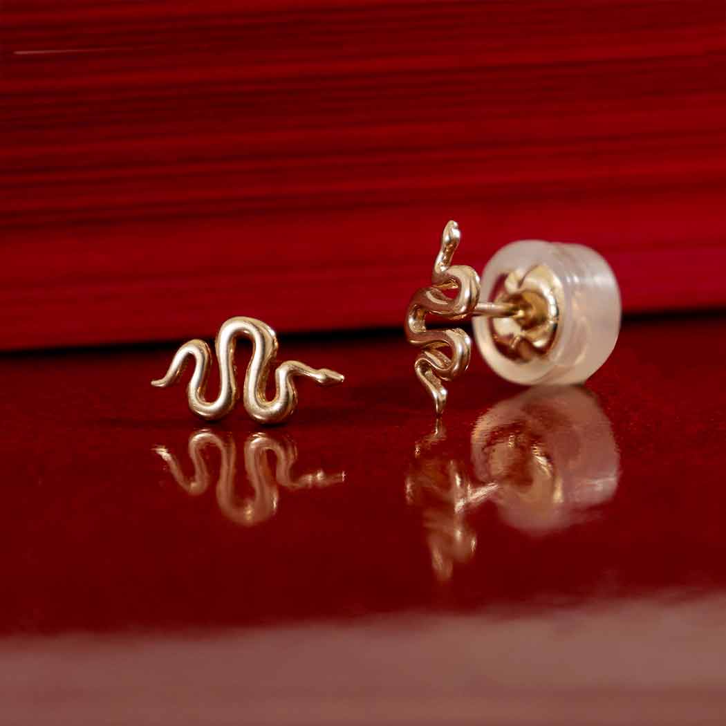 Add instant appeal to your jewelry line when you offer these solid 14K gold tiny snake post earrings. Snakes are beguiling creatures saturated with symbolism. Because they shed their skin & move so quickly, they've come to signify stealth, rebirth, and as protectors of the shadow realms & portals between worlds. Find Solid Gold Necklaces and Charms to add to your jewelry line as well.