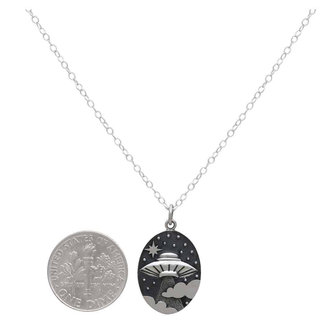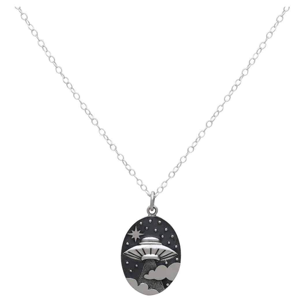 This sterling silver 18 inch UFO in clouds necklace is like the money shot. The million dollar photo. Proof of alien life. We are not alone. Once everyone sees this, there's no denying it. No more conspiracy theory, but actual reality. And you knew it the whole time.