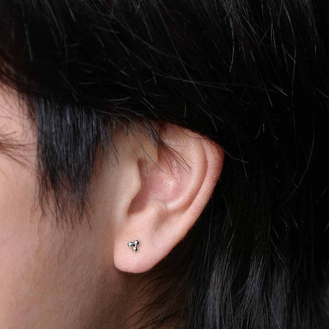 Three spheres arranged in a triangle pattern make up this sterling silver 3 granulation dots post earrings. There are many out there who love tiny earrings, especially when paired with complimentary styles. Consider these tiny three seed earrings the start of something good!