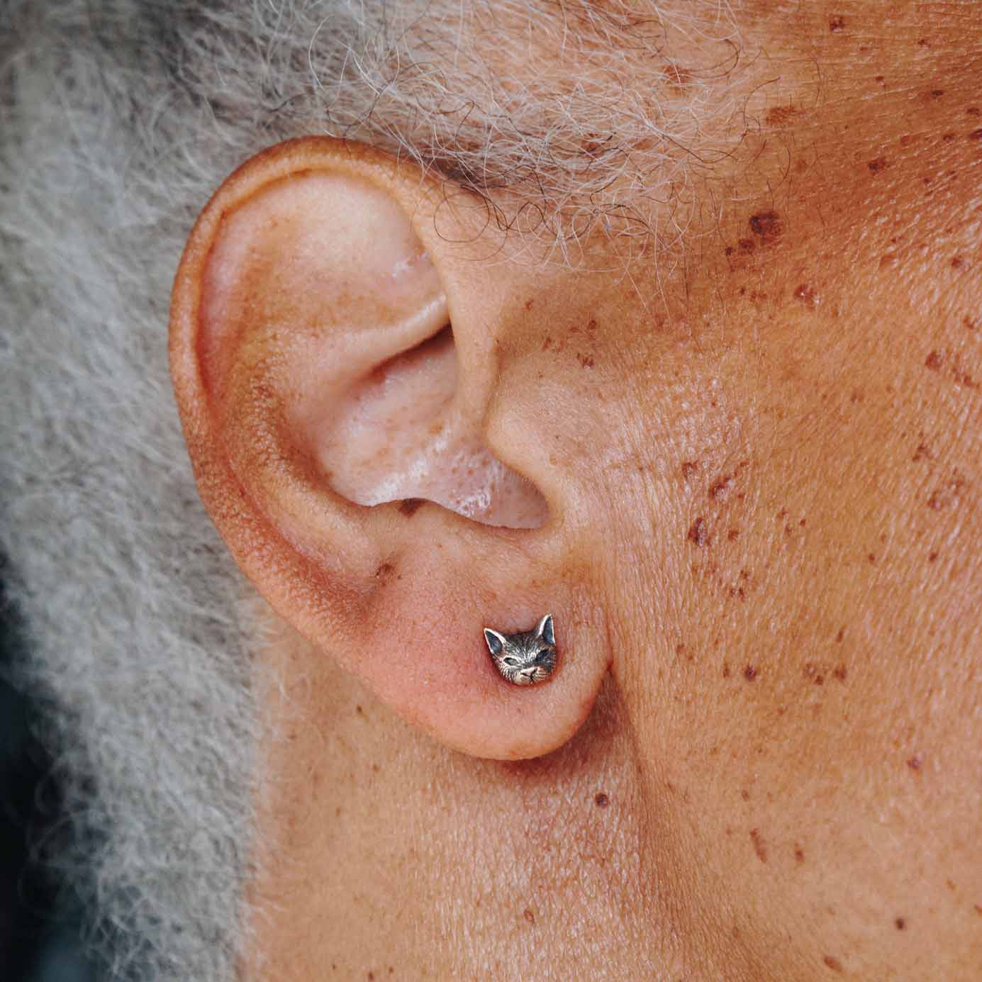 As focused and calm as can be, these sterling silver 3D cat head post earrings will delight the many cat lovers out there. With her perky ears, gentle eyes, and slightly grumpy expression, this kitten will capture your heart, give it a good squeeze and won't let go. You and your customers are in danger of falling deeply in love with sweetest cat earrings in all of kittydom.