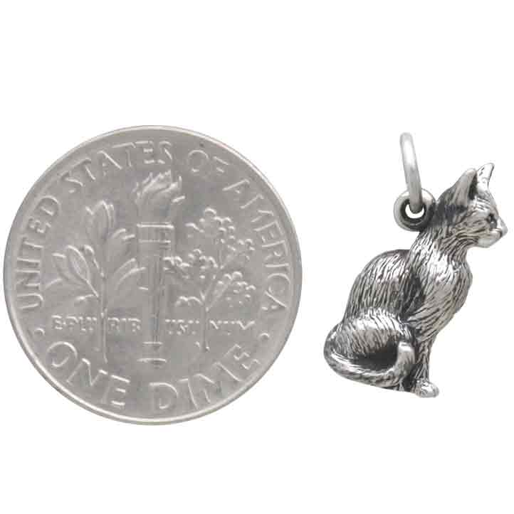 Perky and full of life, this sterling silver 3D cat pendant truly captures feline essence and allure. The texturing highlights her soft coat. Her tail is curled just so. Her eyes are alert, her chest puffed, and ears pricked up like little sonars. Oh, she's just perfect!