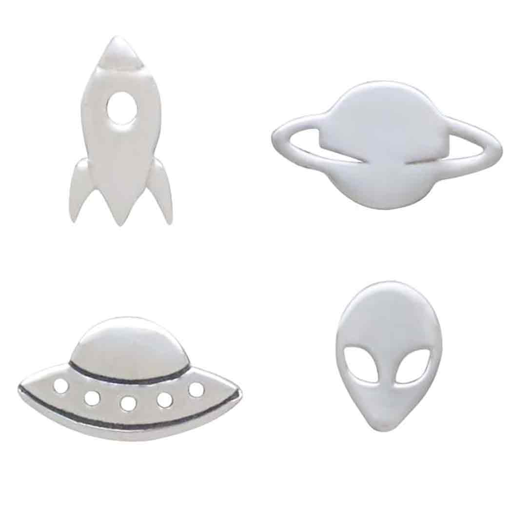 Earthlings, beware . . . sterling silver 4 mismatched alien invasion post earring sets have landed. This fun earring set screams "The aliens are coming! The aliens are coming!" And, who knows? Maybe they really do come in peace?!